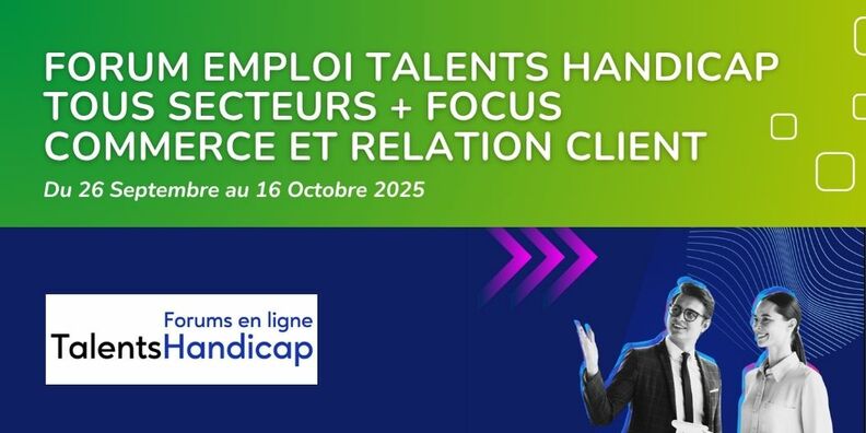 Du 26 septembre au 16 octobre, la 35ème édition nationale du forum 100% virtuel Talents Handicap s'ouvre à tous les secteurs d'activité, avec un focus tout particulier sur le commerce et la relation client, et des employeurs qui valorisent l'inclusion et l'engagement envers le handicap.